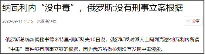 所以俄罗斯方面一直在谴责有人利用纳瓦利内中毒事件的“虚假信息”,实现对俄制裁的目的。