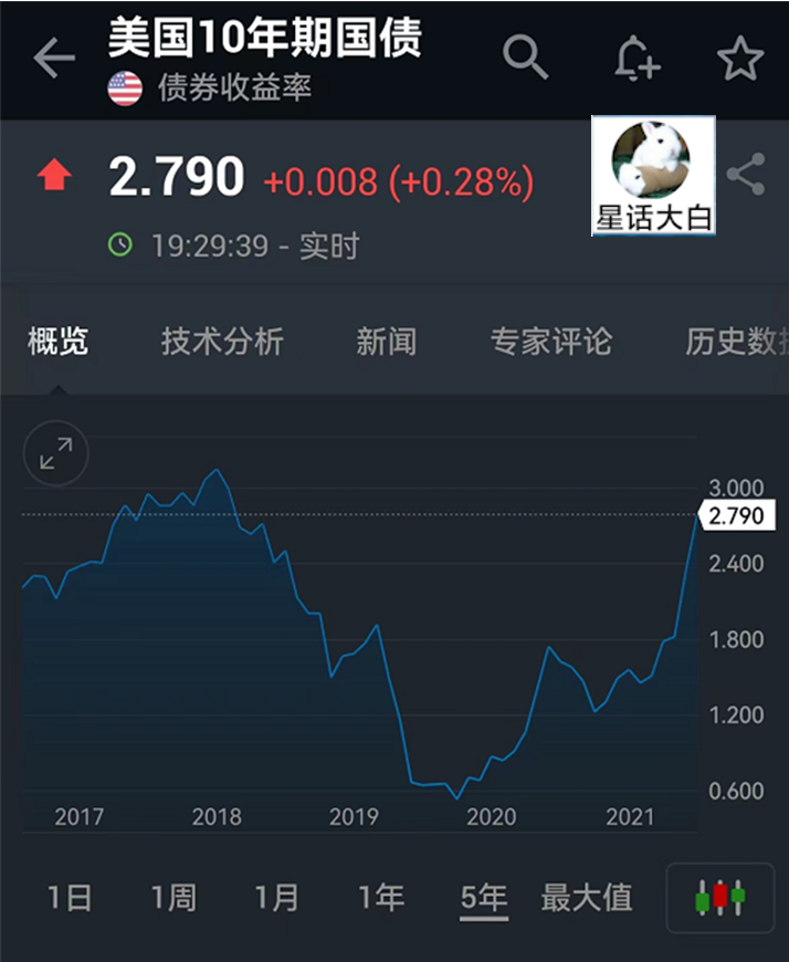 另外一方面,美联储开始激进的加息缩表预期,这导致美国10年期国债收益率暴涨,一路从0.6%,暴涨到现在2.8%的水平。