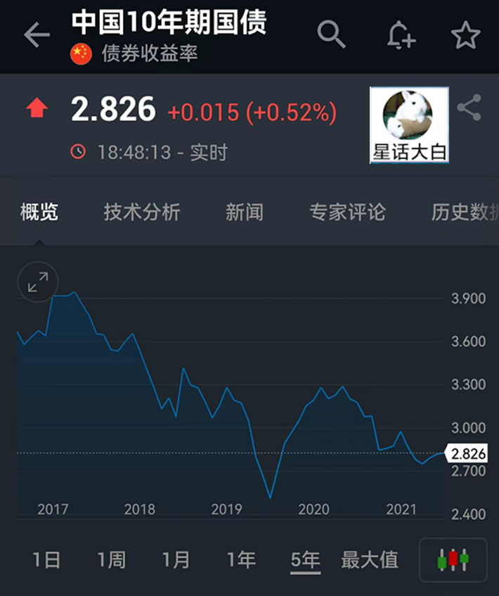 而我们的10年期国债收益率,过去5年的走势是这样的。
