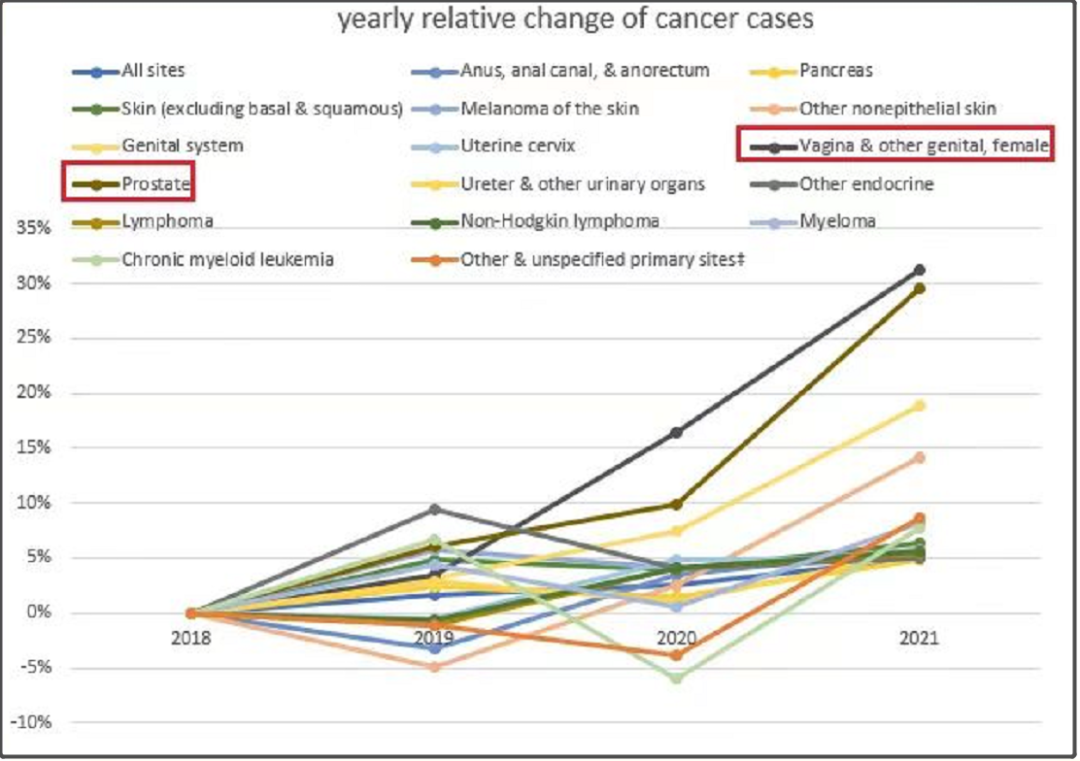 拍帮主找的资料里,还显示,美国2021年各类癌症发病率都出现飙升。