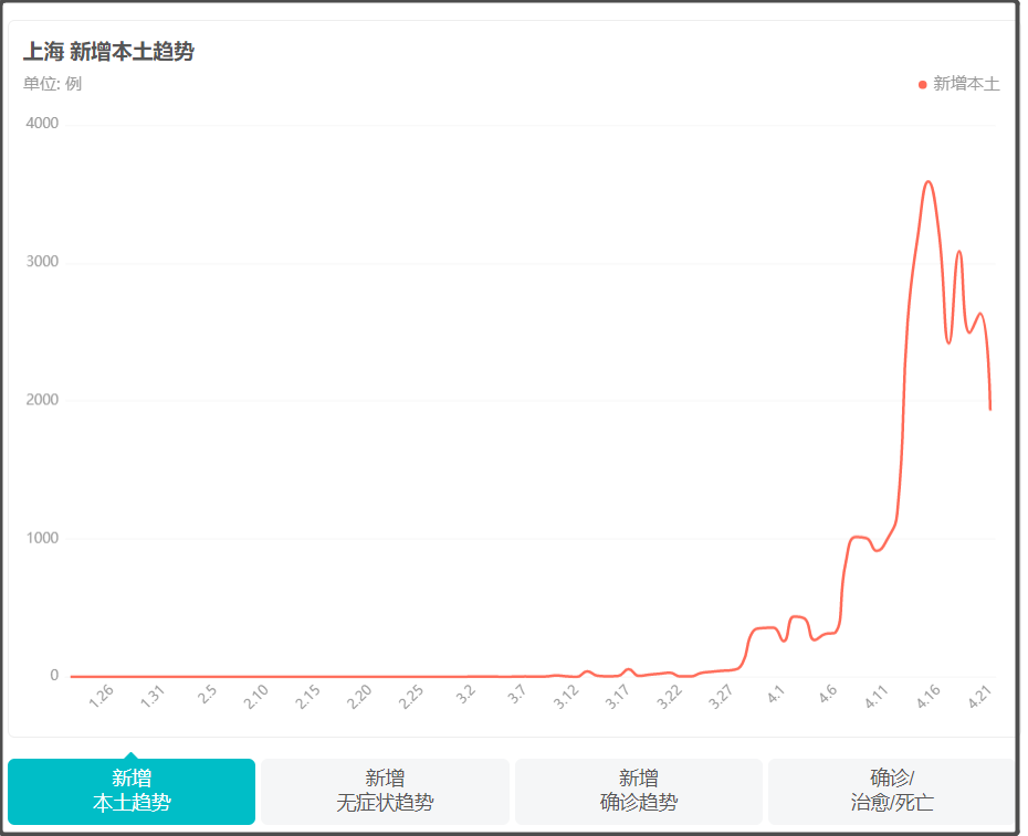 另外一方面,上海新增感染的数据出现拐点,呈现下降。