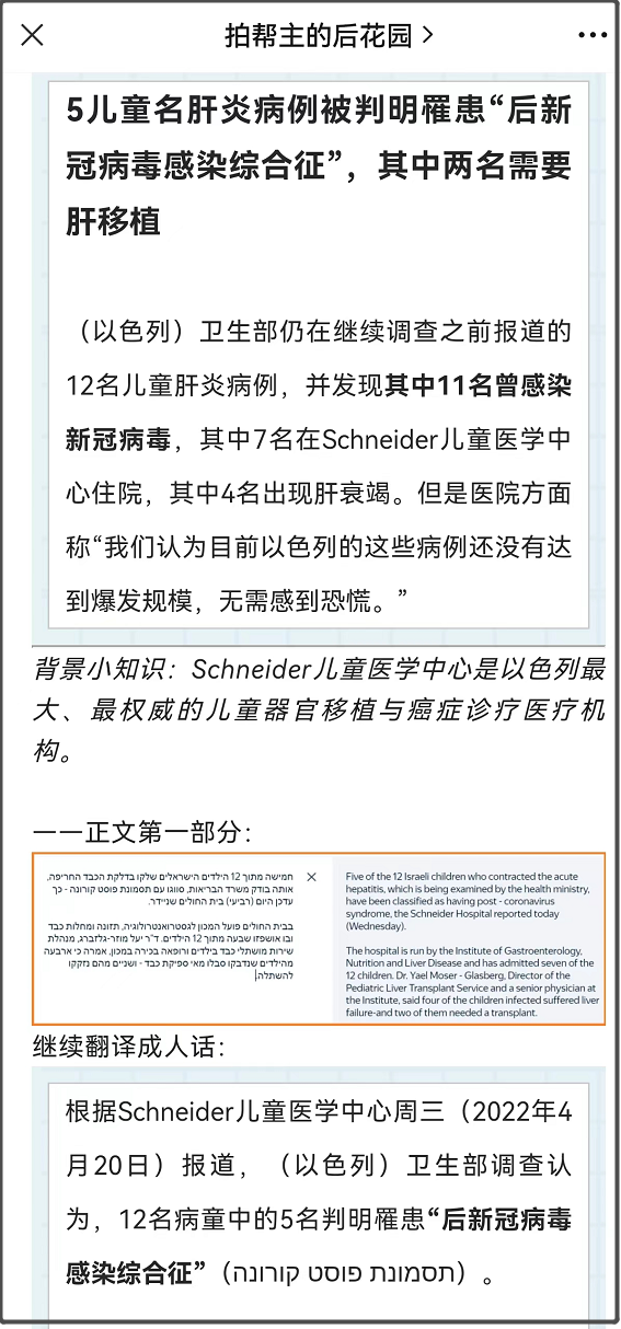 此外,根据拍帮主找的资料,以色列也有出现12例儿童不明肝炎,同时以色列不是简单检测个阳性,而是去进行调查,并发现其中11名儿童曾经感染过新冠病毒。