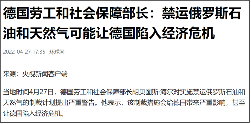 但德国也还是有明白人,比如进德国劳工和社会保障部长就出来警告说,如果禁运俄罗斯石油和天然气,会给德国带来严重影响,甚至让德国陷入经济危机。