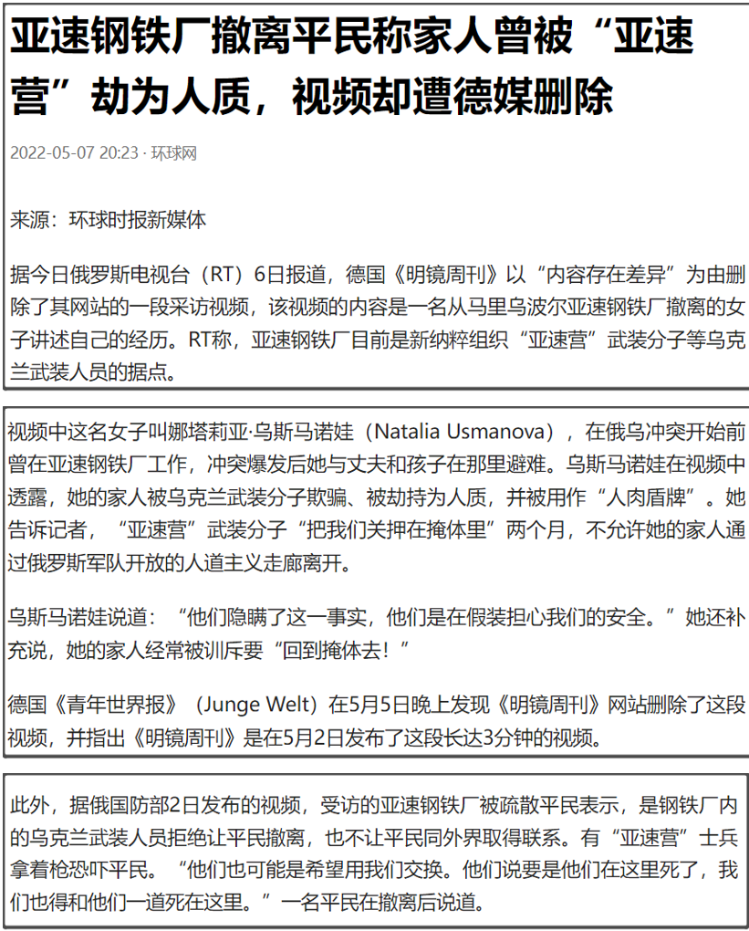 然后其中有些平民,也在镜头前讲述了她和家人怎么被亚速营欺骗,并劫持为人质,成为人肉盾牌。