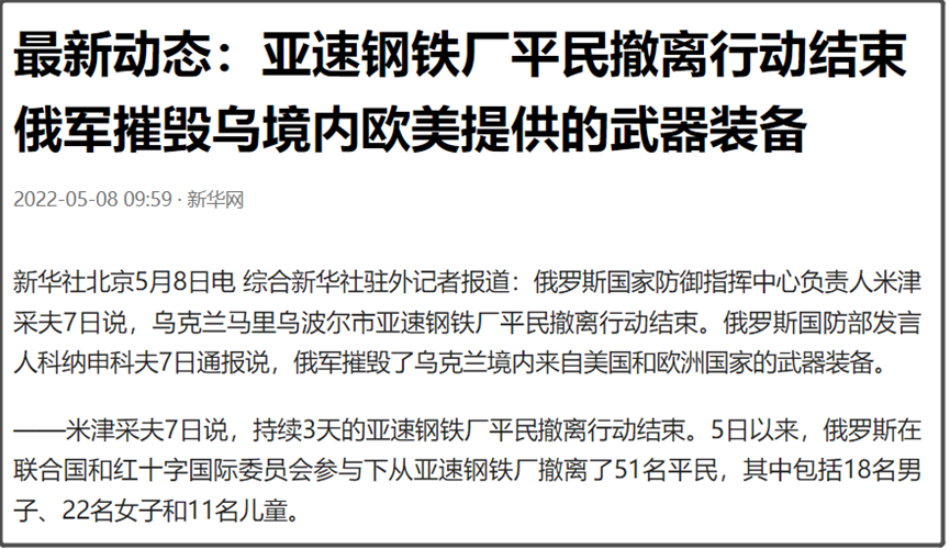 另外,到了5月7日,俄乌双方均表示亚速钢铁厂的平民撤离行动结束。