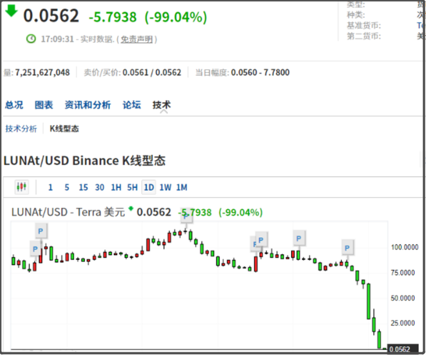 因为就在3月份,LUNA的市值还达到400亿美元,但在过去两天的时间里,就直接跌得基本归零。