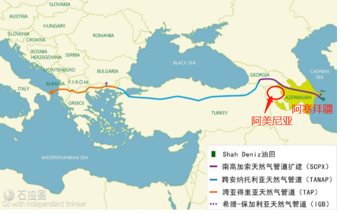 从上图这个南部天然气走廊的路线图可以很清楚的看到,这条路线专门绕过了阿美尼亚,这个比较亲近俄罗斯的国家。