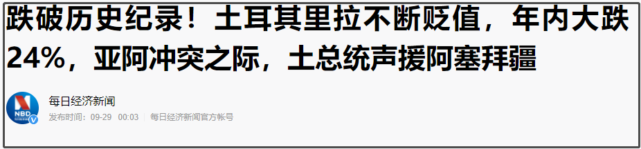 2018年土耳其货币贬值39%,2019年土耳其货币贬值12.81%,今年以来土耳其货币又贬值24%。