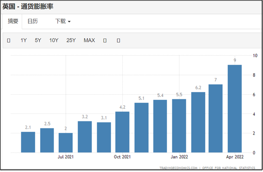 英国则更夸张,英国4月CPI同比增长9%,增幅创1982年以来新高,这已经超过美国4月CPI的8.3%。