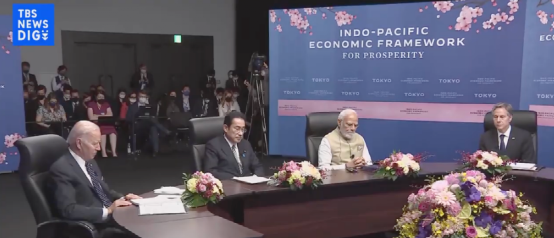并且,印度莫迪因为要参加明天开始的美日印澳“四方安全”峰会,所以今天是“正好”访问日本,于是莫迪也就顺理成章的现场出席了IPEF的启动仪式。