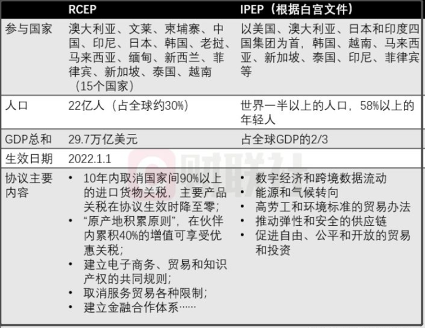 我们可以把IPEF跟RCEP做一个对比,就可以很清楚发现二者的区别。