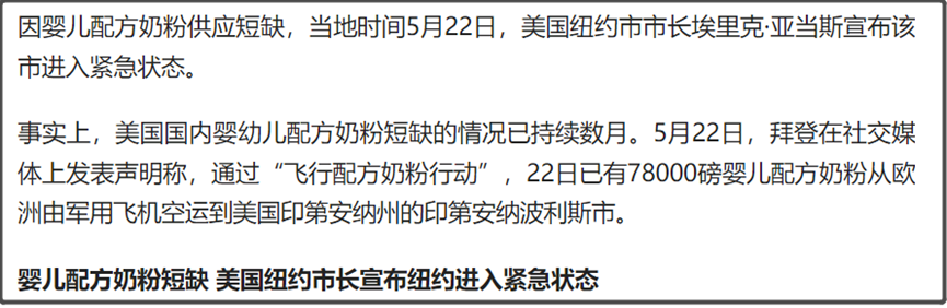比如说,纽约在5月22日,因为婴儿奶粉短缺,进入紧急状态。