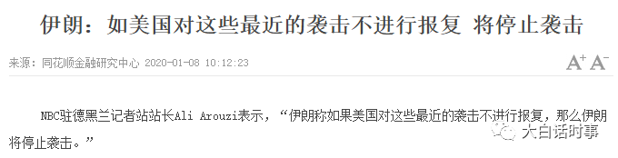 伊朗大概意思就是说,我已经报复完了,只要美国人你别进行再次报复,这件事就这样揭过去了。