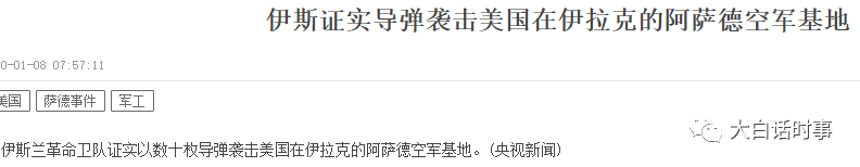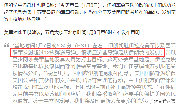 并且后面证实袭击美国军事基地的并非外界一开始传闻的火箭弹,而是由在伊朗境内发生的弹道导弹。