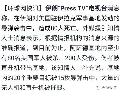 其实特不靠谱今天早上发的那个消息,已经基本可以确定美军在这次报复行为里,没有死人。