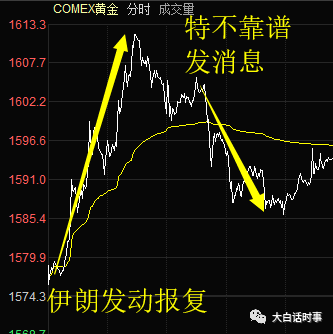 也因此,早盘全球金融市场,特别是黄金在早盘大幅度上涨,一度涨破1600后,也因为特不靠谱的这个消息而出现较大的回落。