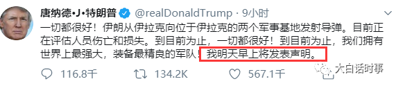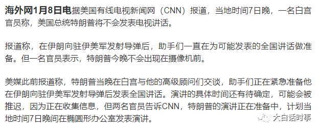 当时美国方面正在紧张的统计美军基地的伤亡情况,如果有出现伤亡,恐怕特不靠谱就会直接进行全国电视讲话,那么这意味着美国可能会直接跟伊朗宣战,否则没必要进行全国电视讲话。