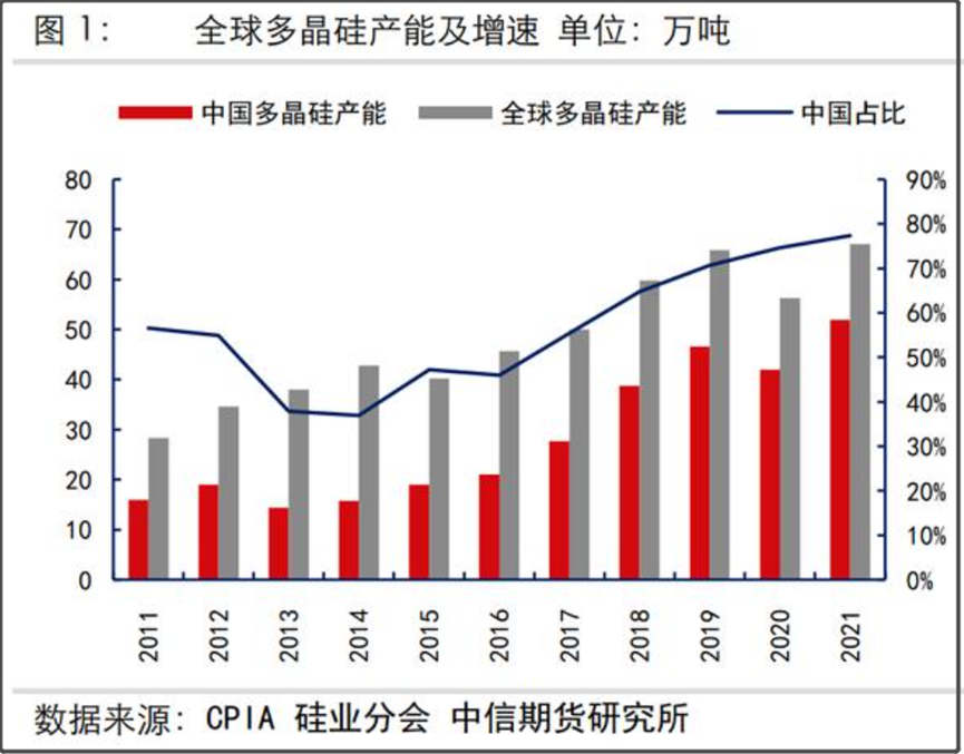 目前在工业硅提纯成多晶硅料这个环节,我国占了全世界80%的产能。