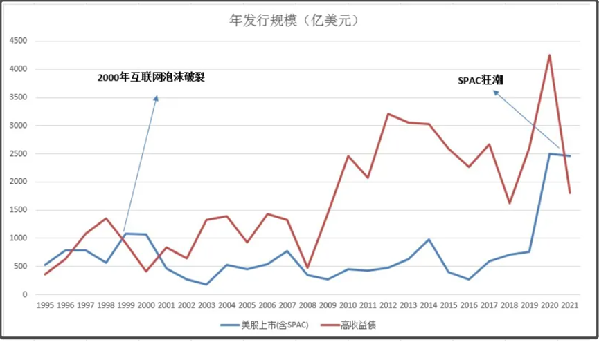 并且在2020年疫情爆发后,随着美联储无限印钞启动,过去两年,美国垃圾债发行规模都是超过4000亿美元。