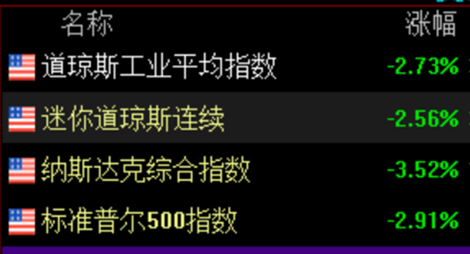 美股道琼斯指数跌2.73%,纳斯达克则跌3.52%。