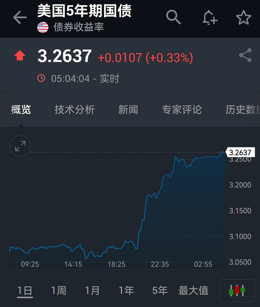 美国5年期国债收益率,是一口气涨了6%,已经涨到了3.26%。