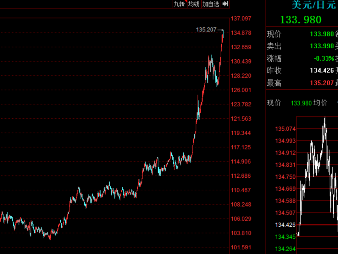 在去年初,1美元还能兑换103日元,但现在就贬值到了135,两年累计贬值23%。