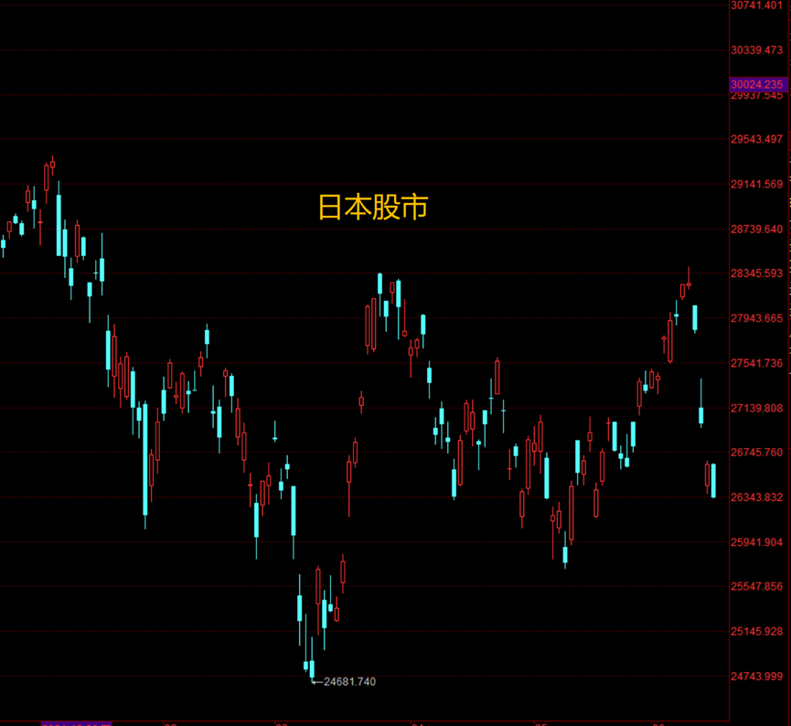 除了日债之外,日本股市从上周五开始也出现暴跌行情,4个交易日跌了6.8%。