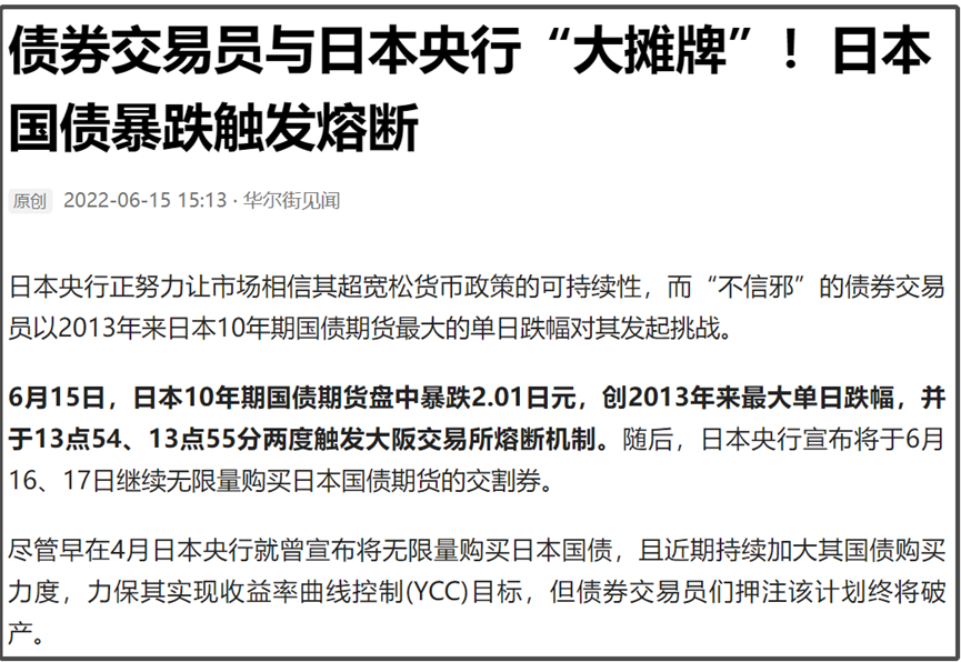 日本央行早在今年4月就宣布将“无限量”购买日本国债,来力保日本国债的收益率曲线控制(YCC)目标得以实现。