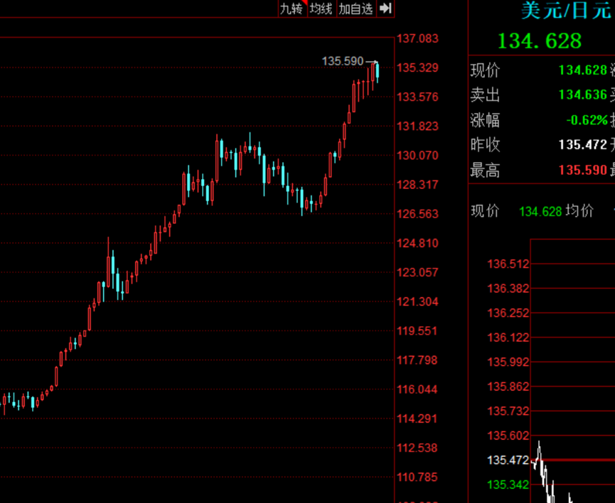 在去年初,1美元还能兑换103日元,但现在就贬值到了135,两年累计贬值23%。