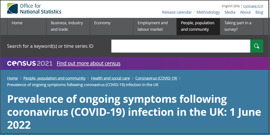 英国国家统计署每个月都要搞一次确诊病例持续症状抽样调查,是现在比较公开的关于奥密克戎后遗症的数据来源。