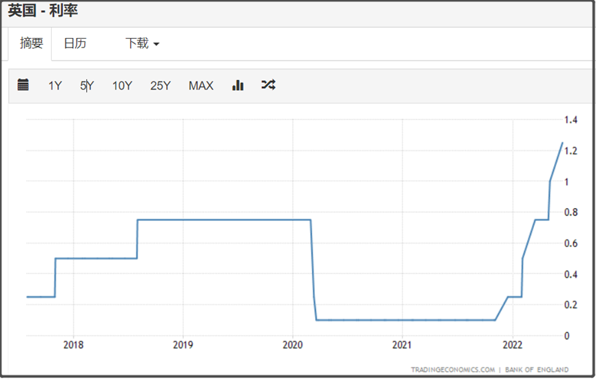 英国央行过去半年,已经把利率从0利率附近,上调到1.25%。