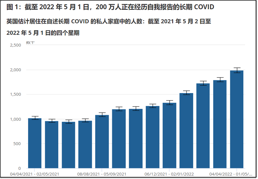 按照这份报告,英国当前有200万人出现新冠后遗症“long COVID”。
