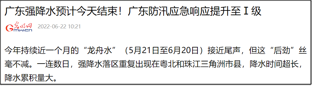 前两天,广东防汛应急响应提升至1级,因为广东有部分地区出现了洪涝灾害,其中以广东清远的英德市最为严重。
