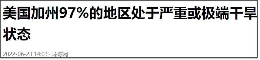 加州是美国蔬菜、水果和坚果的主产地,现在加州有97%的地区处于严重干旱。