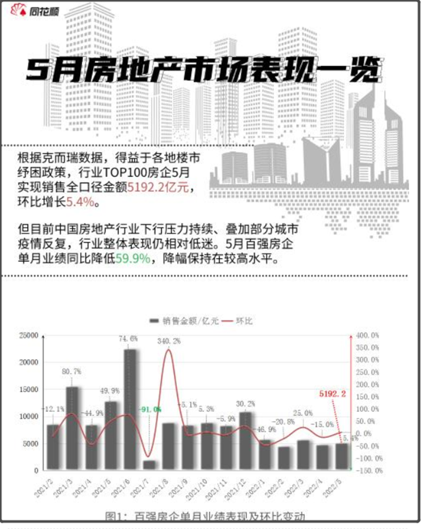 5月我们百强房企5月销售金额是5192.2亿元,环比增长了5.4%,但同比仍然降低59.5%。