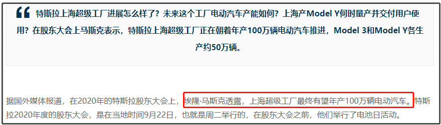 马斯克的野心则更大一些,在9月22日最新的股东大会上,马斯克宣称,上海超级工厂最终有望达到100万辆产能的水平。