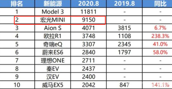 包括其实很多人没想到,在8月份差点把特斯拉从销售冠军宝座拉下来的,是我们的五菱宏光神车。