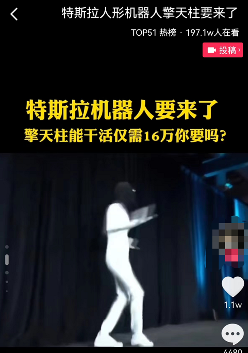 某些社交平台上,甚至出现“特斯拉即将发布取代 70% 工种的机器人”,这样十分吸引人噱头的文案。