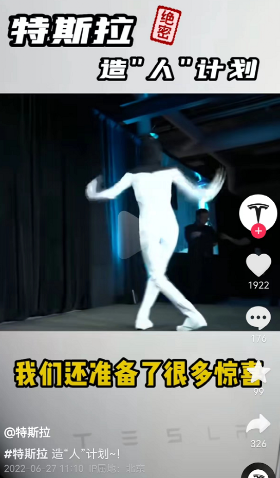 因为特斯拉在抖音的官方账号,在6月27日也发布了一个特斯拉机器人的视频,标题写着《特斯拉绝密造“人”计划》。