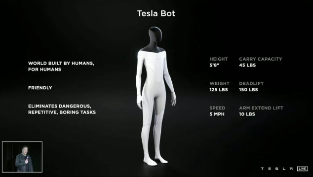 2021年8月19日,首次举行的人工智能日,马斯克正式宣布特斯拉正在研发机器人,并且会在2022年中公布特斯拉机器人的原型机。