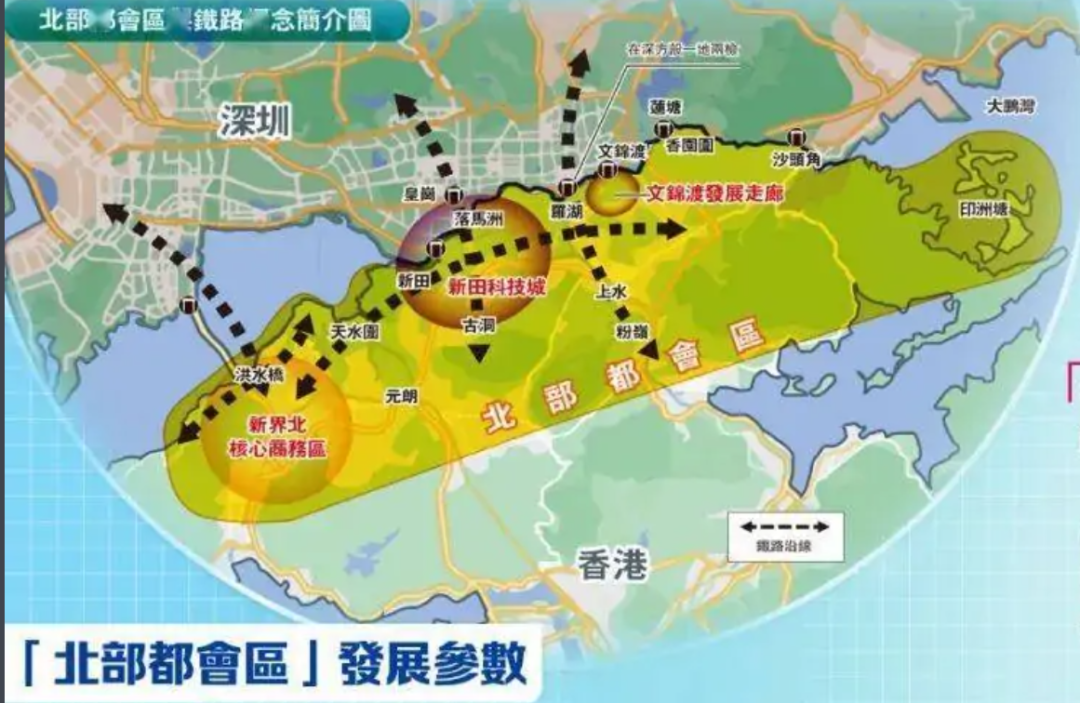 这个北部,微观概念是指香港去年提出的“北部都会区”规划。