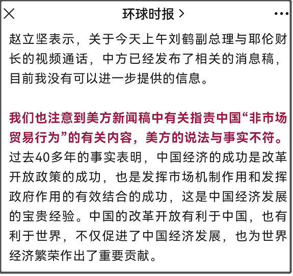 因为美国财政部的新闻稿里,并没有提及关于对我们加征的关税和制裁,以及公平对待我们企业等问题。