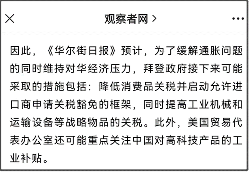 《华尔街日报》也有报道称,为了缓解通胀问题,拜登政府可能采取的措施包括: