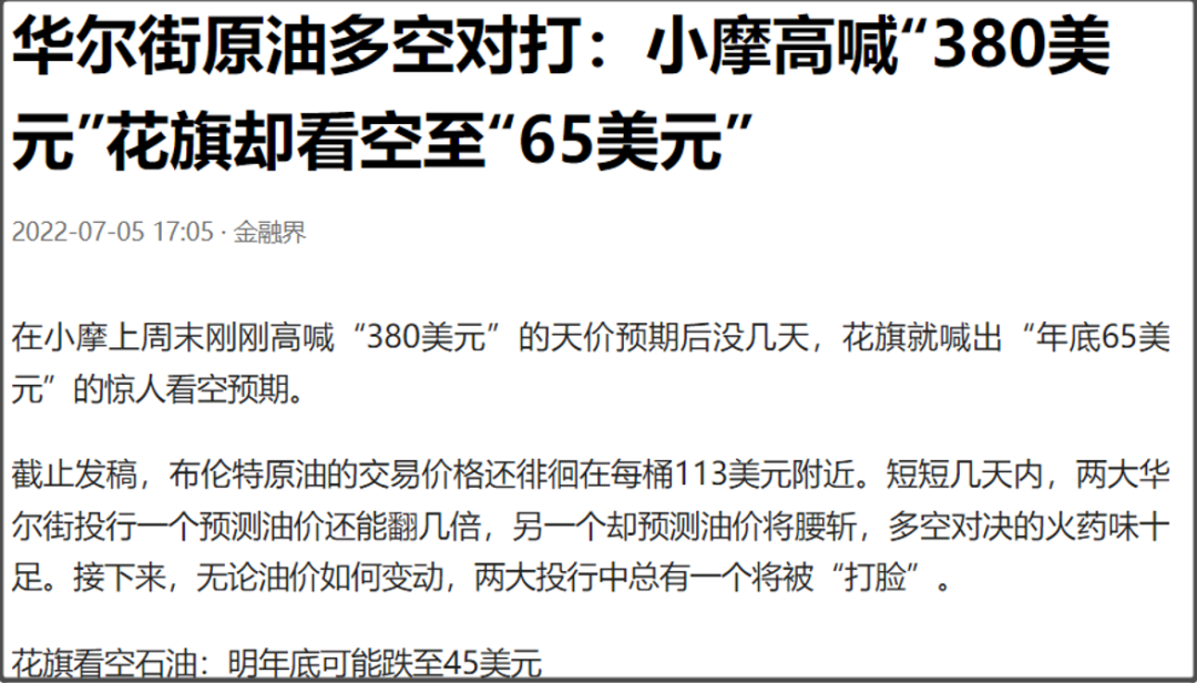 而当前一些国际机构,对于原油走势的预期,也出现非常离谱的偏差。