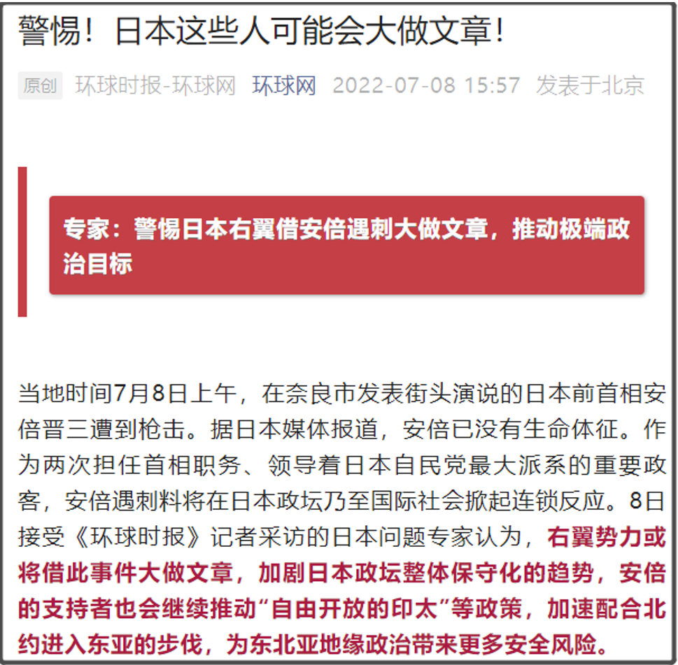 日本右翼可能会通过安倍死亡,让日本政坛更加保守化,而且安倍这次枪击的演讲,就是某些激进政策的宣传,试图给日本军事化进一步松绑。