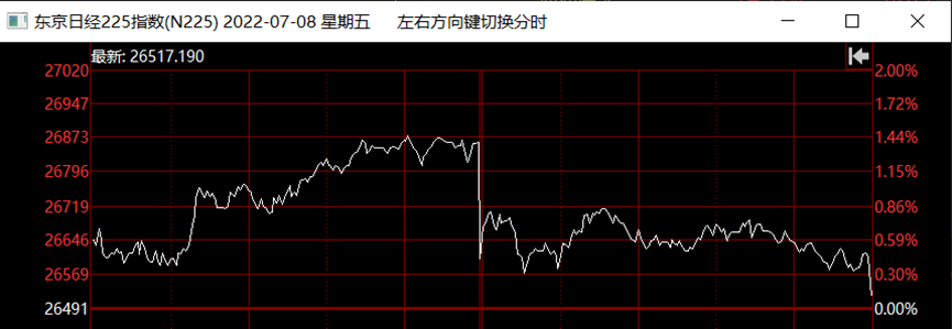 今天日本股市,则只是从涨1.44%,变成不跌不涨的状态。