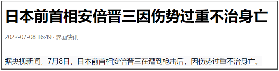 因为日本前首相安倍晋三,在今天早上街头演讲时遭遇枪击,并于下午因伤势过重不治身亡。