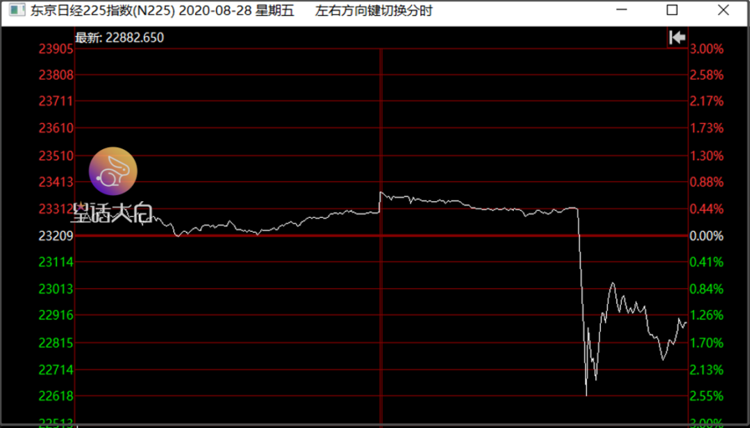 2020年8月28日,安倍宣布要辞职的时候,日本股市一度跳水3%。