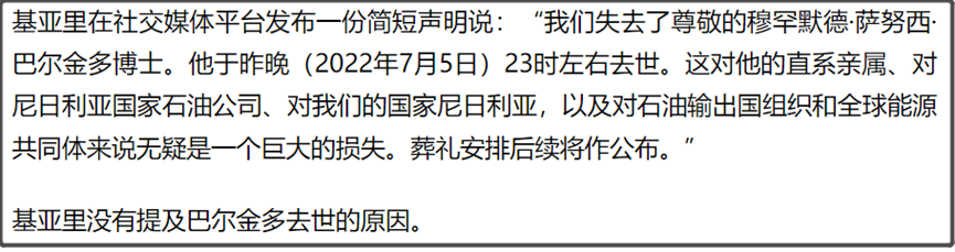 而巴尔金多是在拜登访问中东前一个礼拜突然去世,这个时间点还是比较巧合。还是有些猫腻