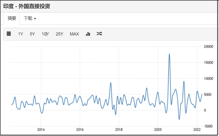 这个主要是因为“外国直接投资”和“外国证券投资”这两项在印度长期是正的,而且每年外国对印度的投资数额都不少。